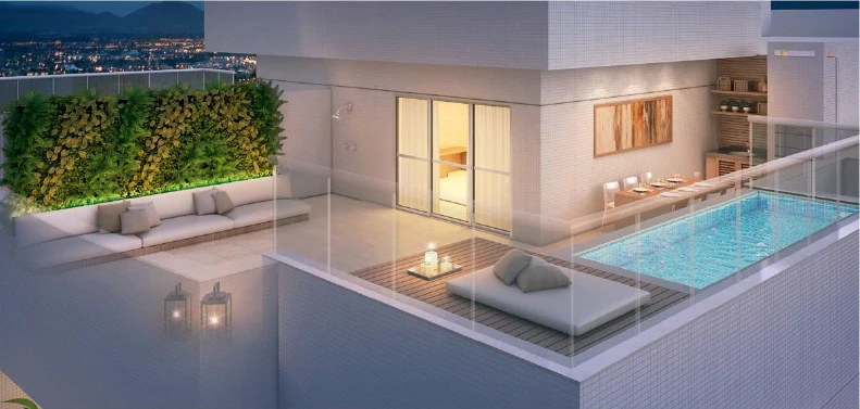 Fachada totalmente revestida com cerâmica branca, detalhes em pele de vidro e mármore branco apicoado. Estilo moderno, maior amplitude e luminosidade natural. Sala, quartos, varanda e lavabo entregues em porcelanato 60x60cm.