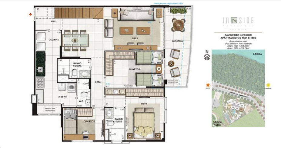 - Opção de vista exuberante para a lagoa ou vista inspiradora para o parque;